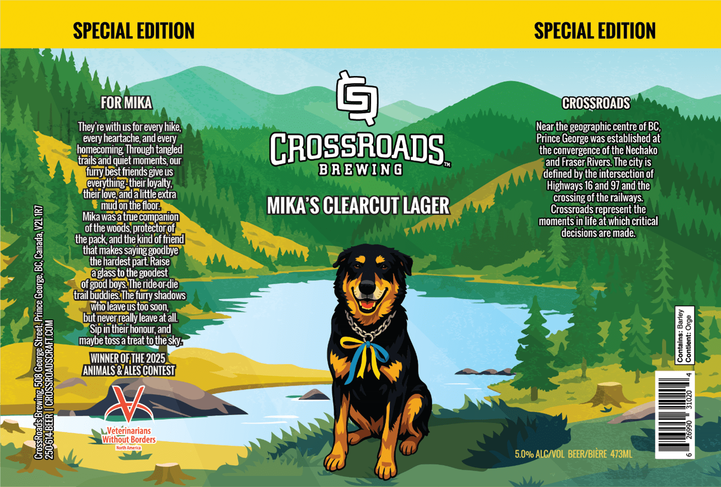 Yes, you can enter a beloved pet who has passed away. Here’s an example of a label created by Crossroads Brewing to honour the late winner, Mika: