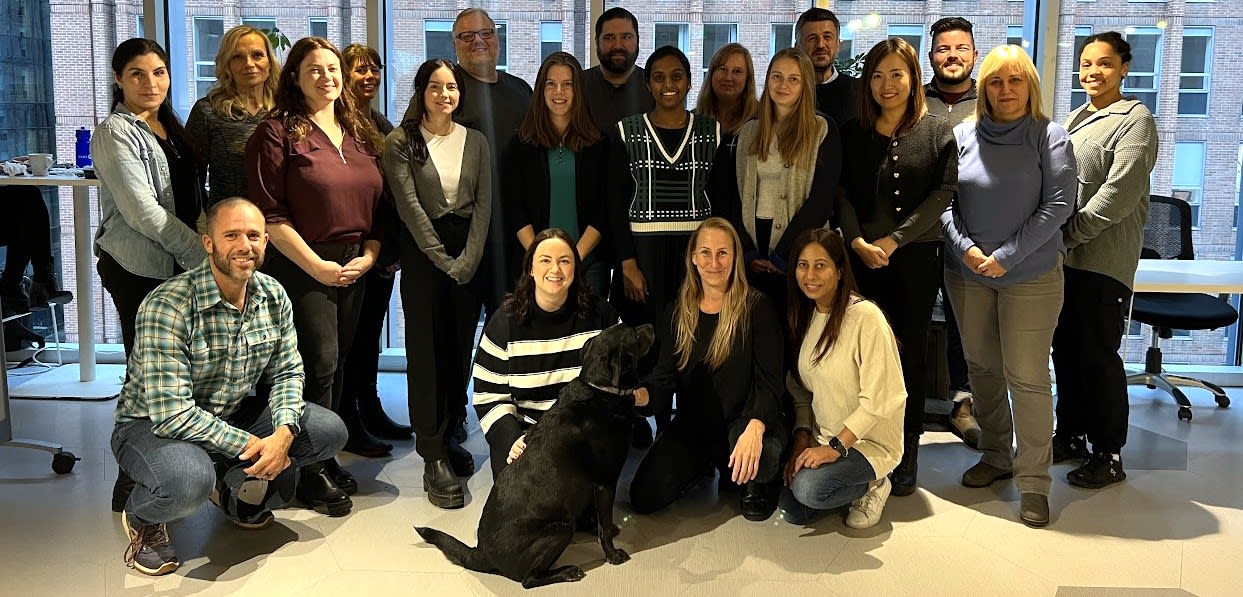 PHOTO: VWB staff gathered at the November 2023 team retreat held in Ottawa, ON. Charmaine (and her dog, Zoie) in the front row, second from right.