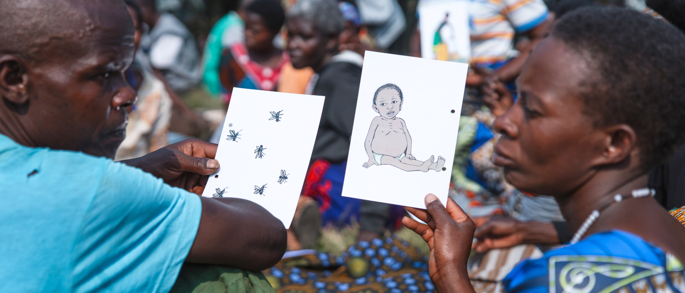 PHOTO: Members of the Community Hygiene Club in Tare Sector discuss illustrated hygiene cards, identifying everyday risks and solutions as part of their skills building.