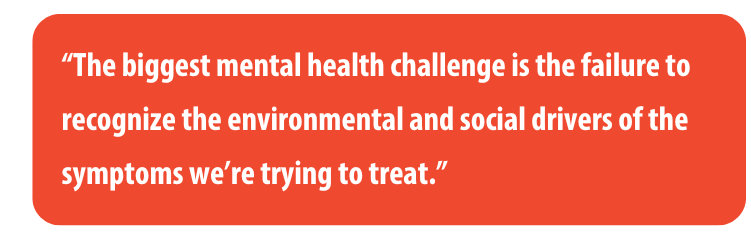 A: I've talked to thousands of veterinary professionals at this point along with support staff and students. And I've seen almost everything. For me, the biggest mental health challenge is the failure to recognize the environmental and social drivers of the symptoms that we're trying to treat. Like, what are the conditions that breed burnout? What are the conditions that breed lack of capacity, fatigue, and all of that?